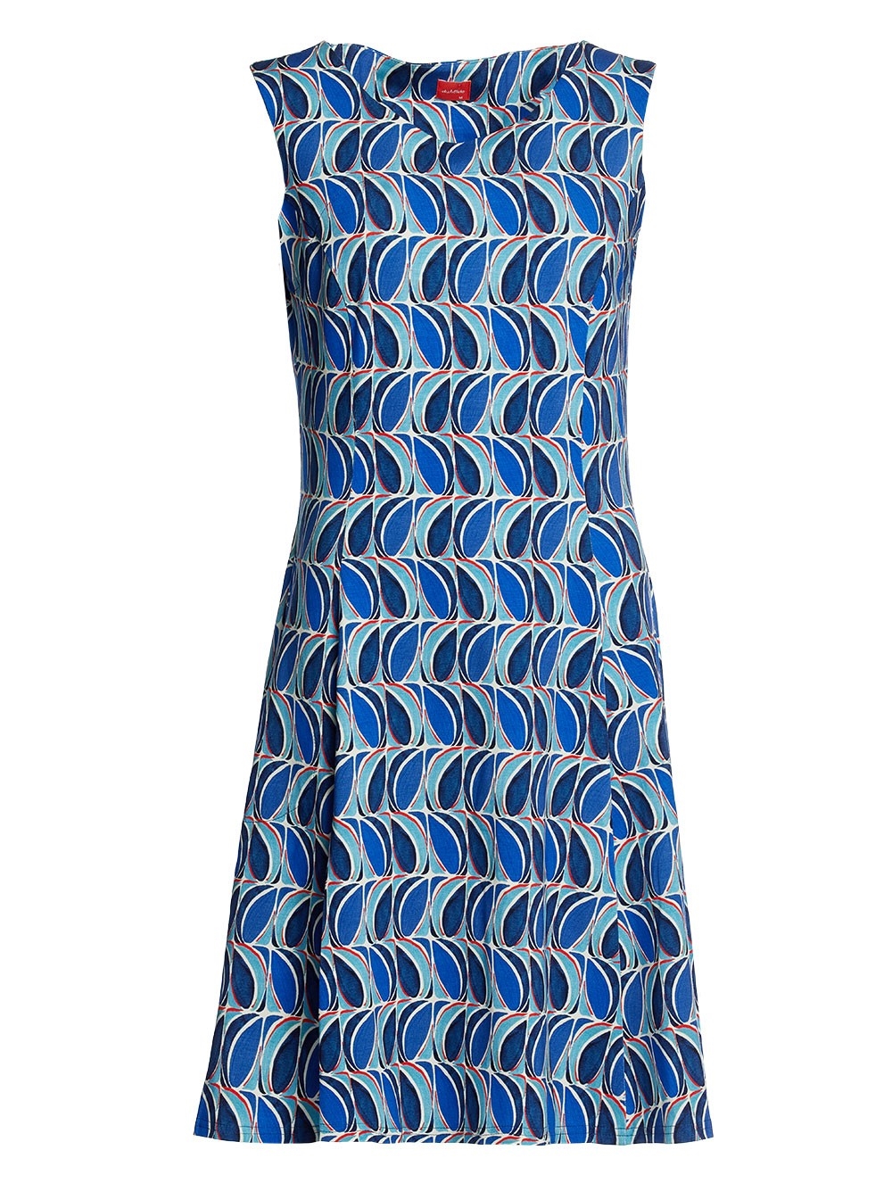 Skøn kjole i blå, røde og offwhite farver mønster i 92% viscose og 8% elasthan fra du Milde.
